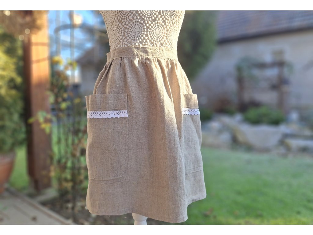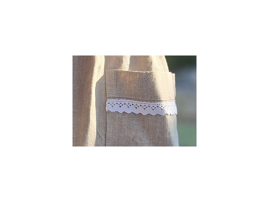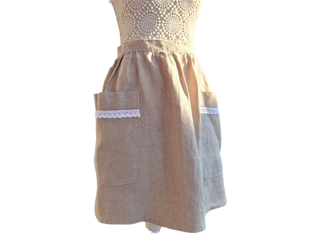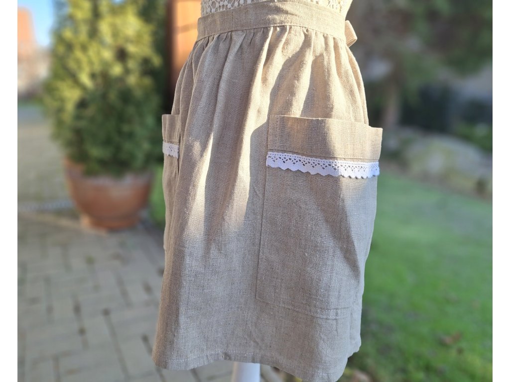 Ručne vyrábaná ľanová zástera na varenie zo 100 % prírodného ľanu. Polovičný strih je praktický a pohodlný pri každodennom varení, zatiaľ čo jemná čipka dodáva zástere elegantný, nadčasový vzhľad. Vysokokvalitný ľan je odolný, priedušný a príjemný na nosenie. Ideálna voľba pre tých, ktorí ocenia handmade kvalitu a prírodné materiály.