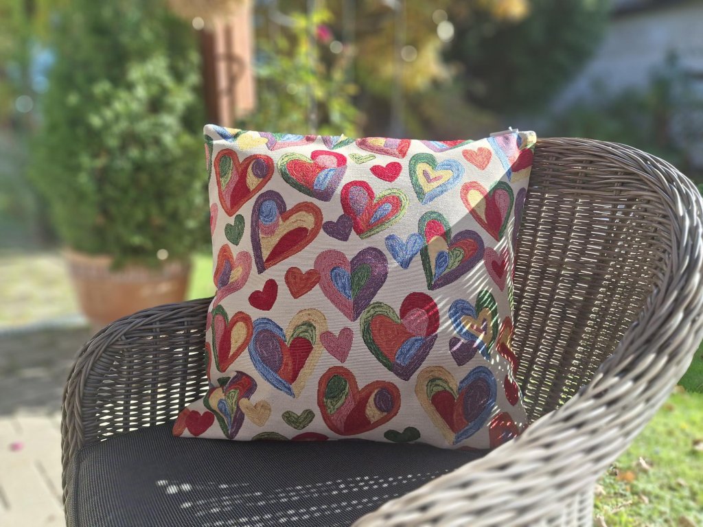 Obliečka na vankúš SRDCE – romantický motív, príjemný materiál a elegantný dizajn, ktorý dodá vášmu interiéru útulnosť a šarm.