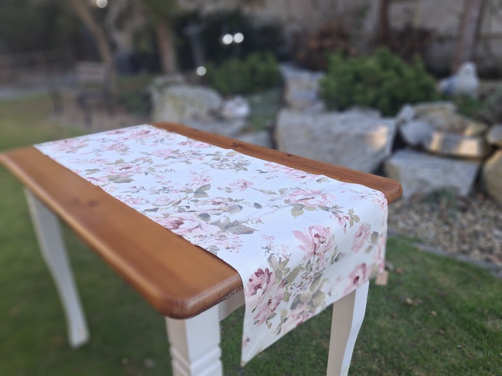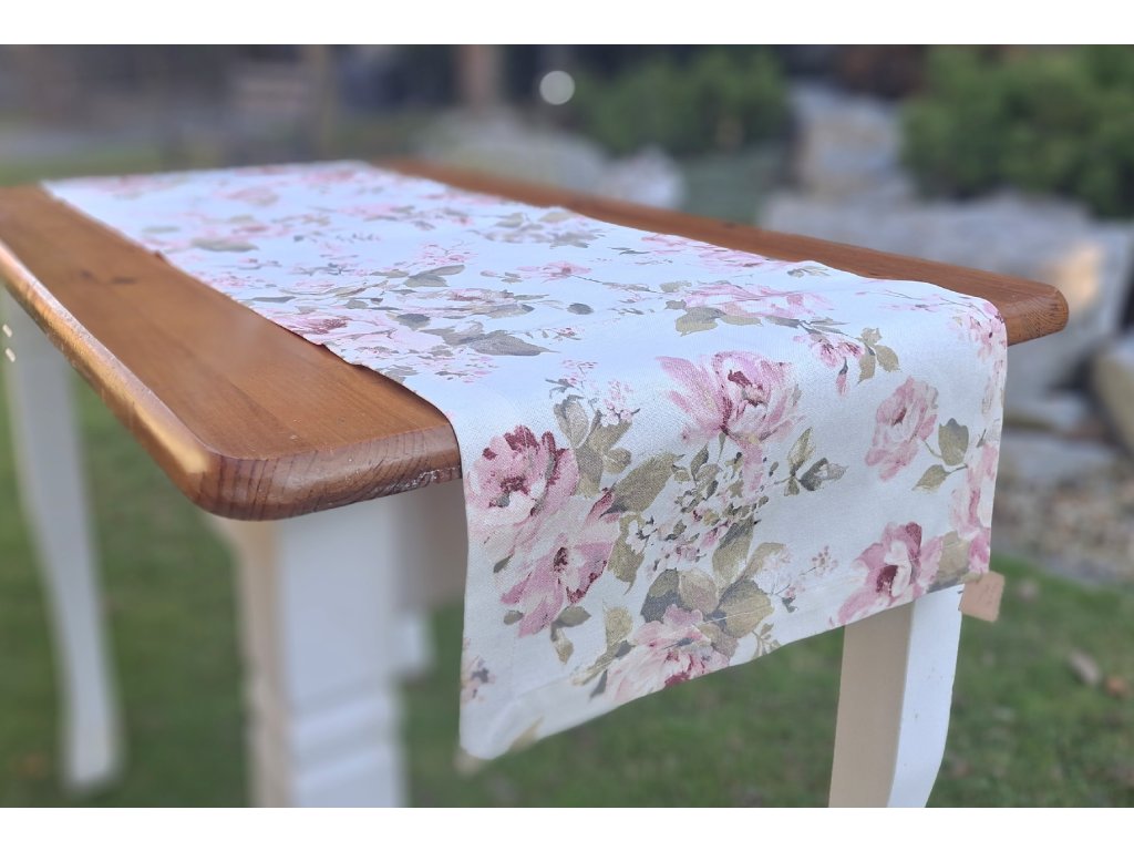 Štýlový obrus na stôl s motívom ružovej ruže so zelenými listami, ktorý vnesie do priestoru romantickú a sviežu atmosféru. Vyrobený z kvalitnej lonety, je pevný, odolný a vhodný na každodenné aj slávnostné stolovanie.